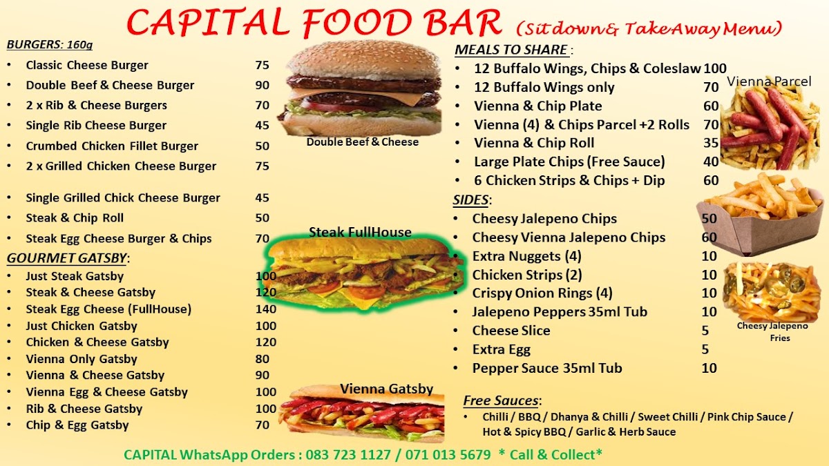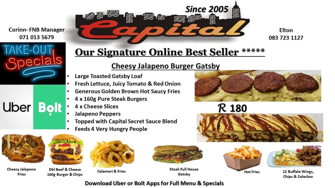 Welcome to Capital Food, a vibrant fast food restaurant located at 18 Gladiator St, Kensington, Cape Town. This bustling eatery is not just about quick meals; it offers a delightful social atmosphere. Guests often rave about the chance to connect with others, whether you come with friends or make new ones. Capital Food is particularly lively on Thursdays and Sundays, featuring karaoke and happy hour specials that keep the energy high.